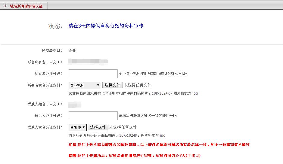 按照工信部2017年全面域名实名认证的要求,为了不影响您的域名正常使用,已注册成功的域名请于5天内完成实名认证。已注册成功的域名请尽快在指定的实际完成实名认证,以免域名被注册局禁止解析导致域名不能正常使用。