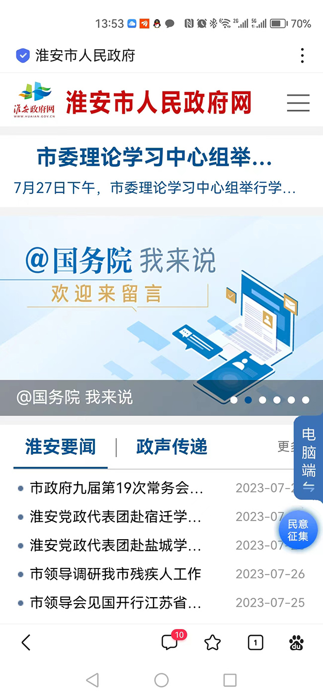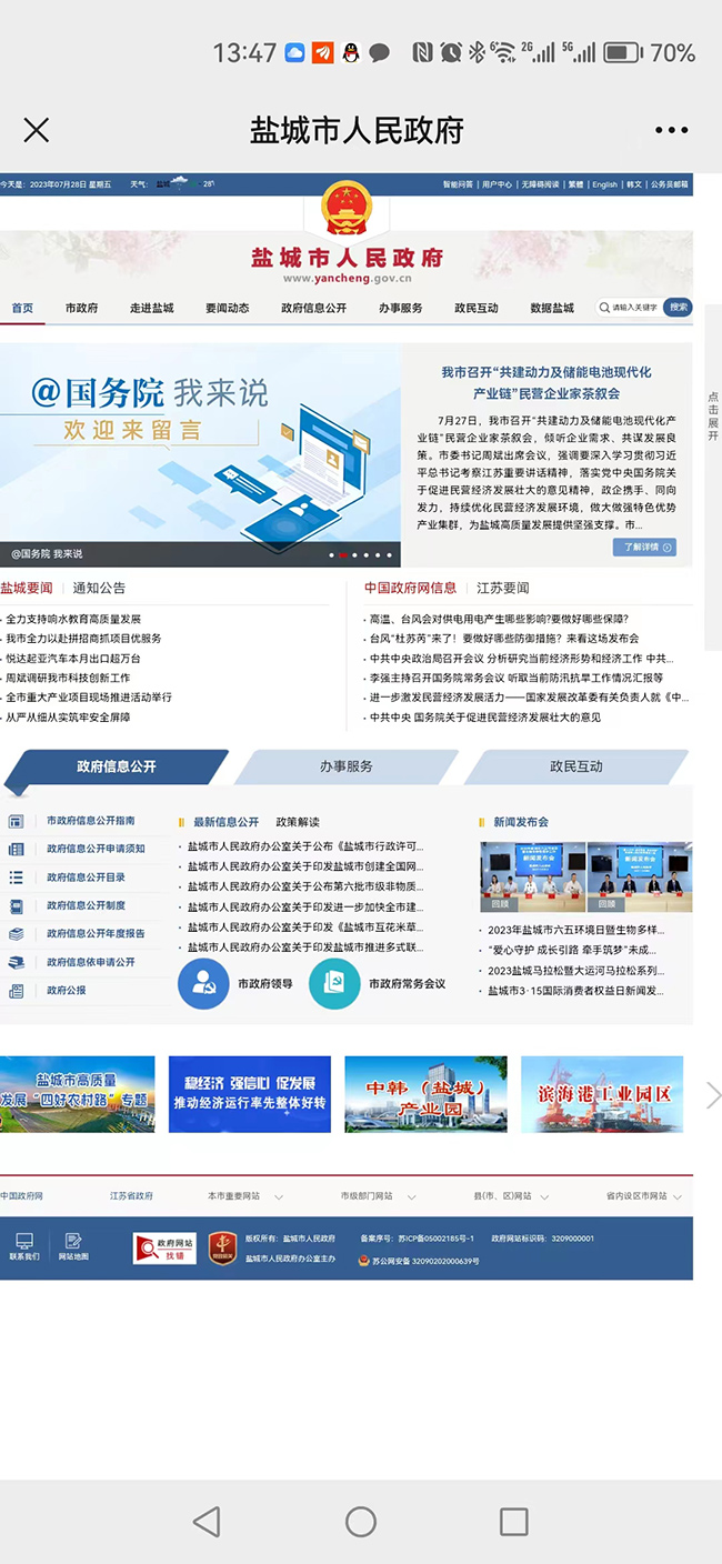 随着互联网的快速发展,各行各业逐渐融入到了互联网。随着智能手机的普及应用,越来越多的企业及政府服务部门也紧跟时代发展的步伐,但遗憾的发现,还有一些没有跟上。今天在手机上打开我们盐城市人民政府的网站,居然还是电脑版的。